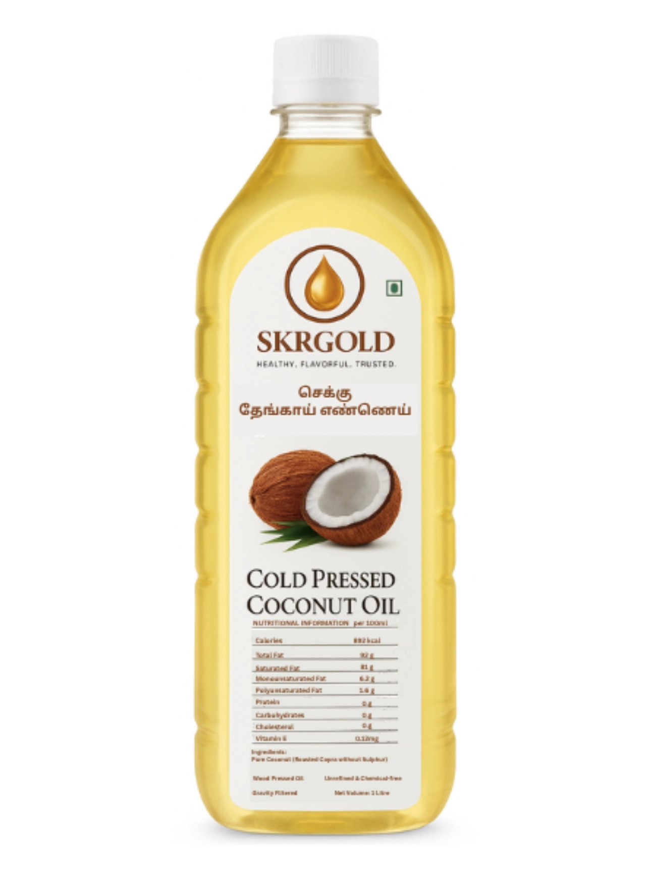 Experience the natural goodness of pure Coconut Oil, extracted from premium-quality coconuts using traditional methods. This 1-litre pack is ideal for cooking, hair care, and skincare. Known for its natural aroma, rich taste, and health benefits, our coconut oil is 100% pure, chemical-free, and cold-pressed to retain all essential nutrients.