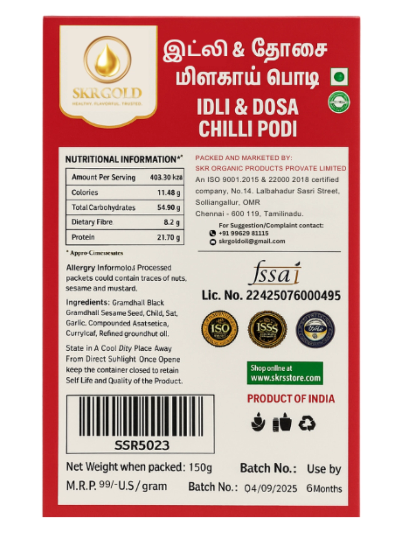 Prepared using traditional methods to maintain freshness and authenticity, SKR Gold ensures every spoonful delivers the true taste of home.