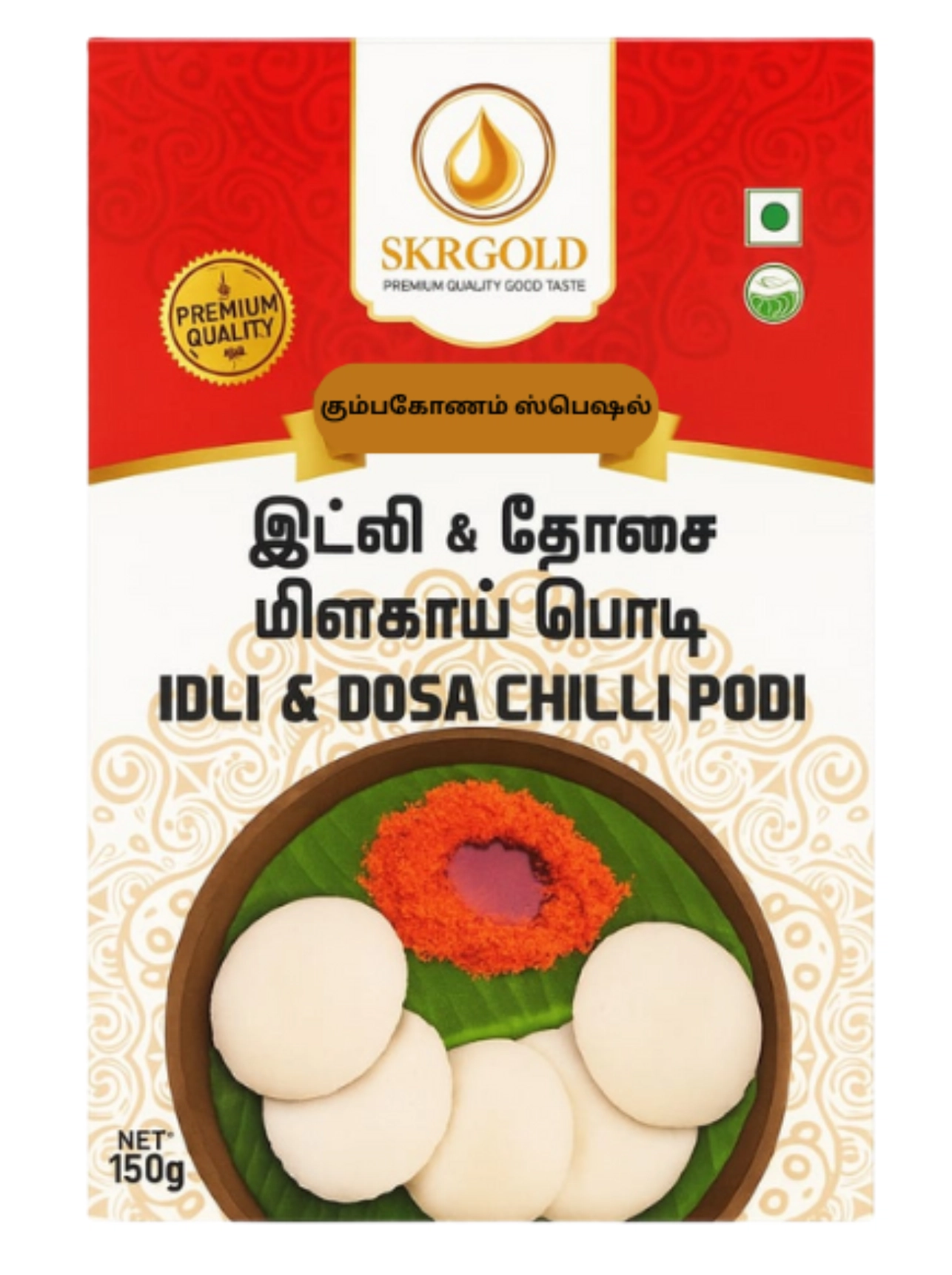 SKR Gold Idly & Dosa Podi is a flavorful South Indian chutney powder made with roasted lentils, red chilies, sesame seeds, and aromatic spices. This coarse, spicy blend is packed with a nutty aroma and rich taste, giving your idly and dosa a delightful twist. Enjoy it by mixing with ghee or sesame oil for a lip-smacking accompaniment, or sprinkle it over rice for extra flavor.